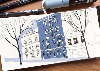 Быстрый скетч маркерами POSCA удивительных пейзажей Амстердама.